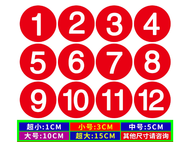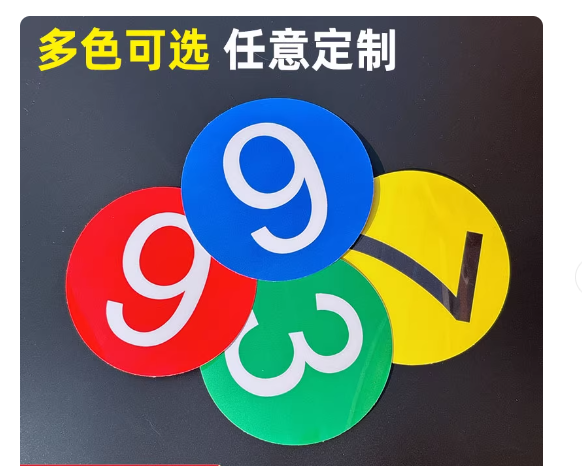 数字贴纸号码牌编号PVC胶片贴号牌背胶自粘墙贴放水 数字标牌小号数字贴设备机床餐桌圆形牌序编号牌定制定做